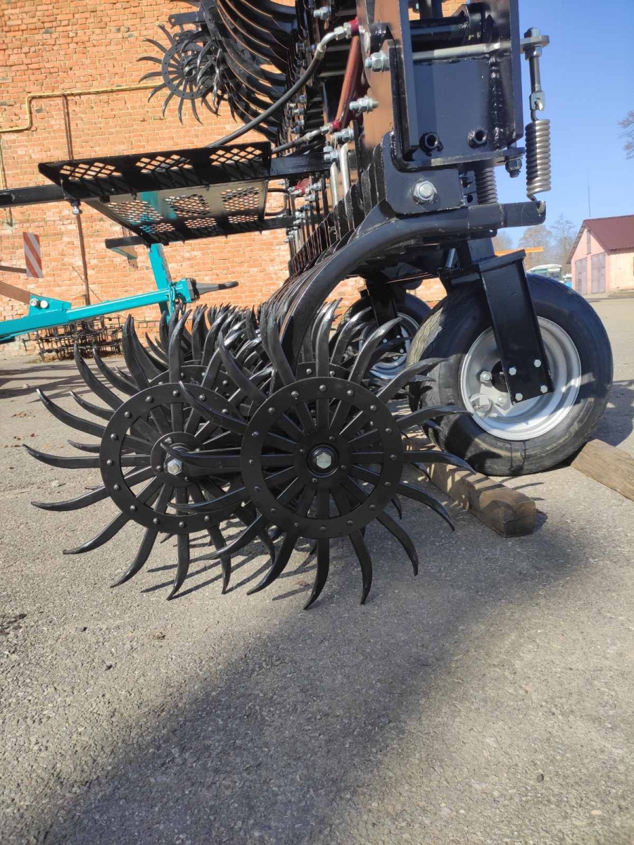 Робочі органи: Робоче колесо (виготовлене зі штампованим зубом за технологією John Deere) призначене для ефективного руйнування ґрунтової кірки, аерації верхнього шару та дбайливого обробітку посівів у довсходовий і післявсходовий період.